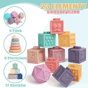 WOOPIE BABY Klocki Sensoryczne Układanka do Ściskania Dźwięk Nauka Liczenia 23 el.